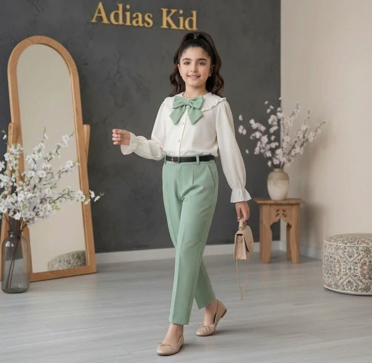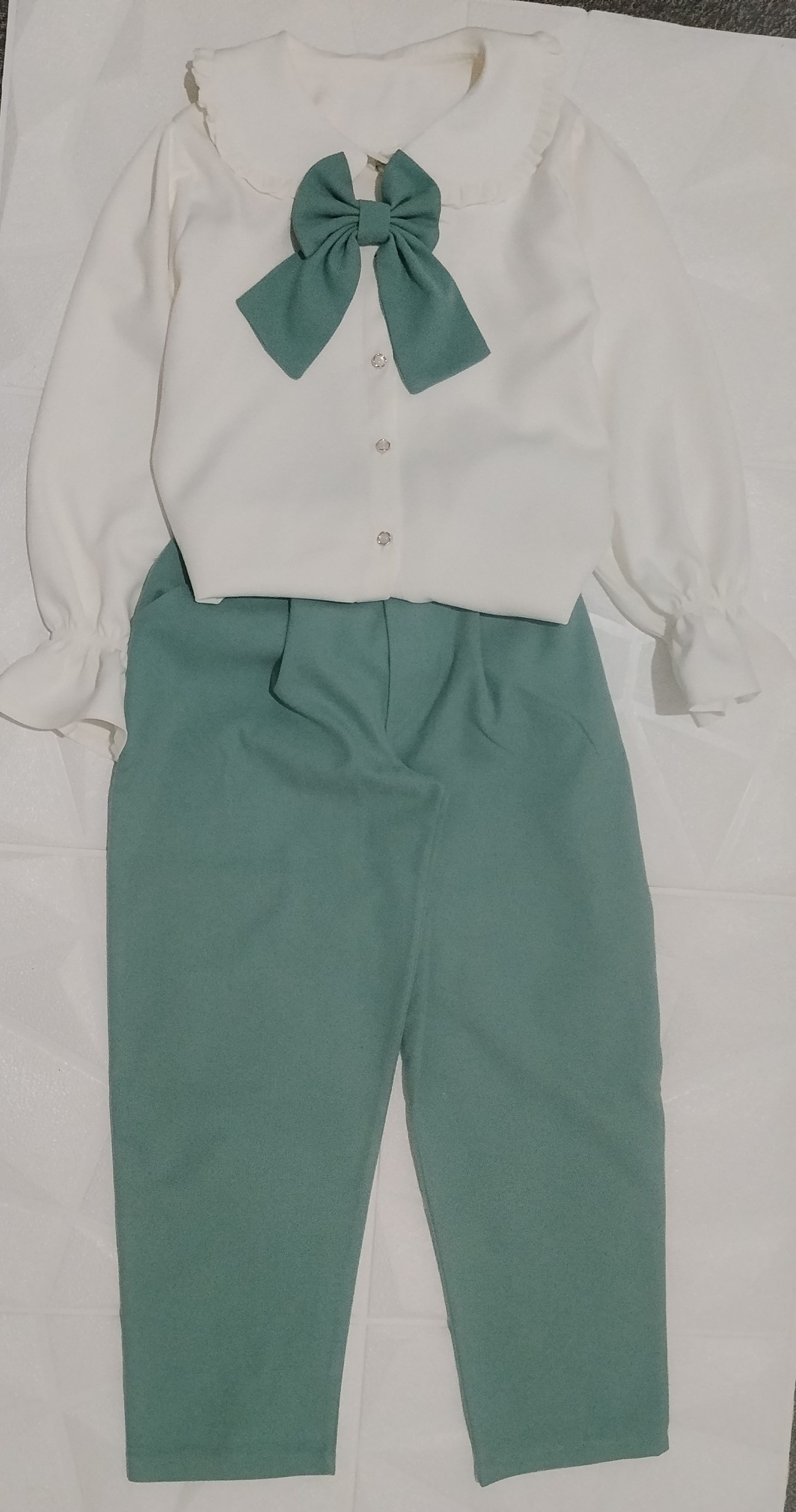 ست شومیز و شلوار پاپیون دخترانه سایز بزرگ عیدانه و مجلسی